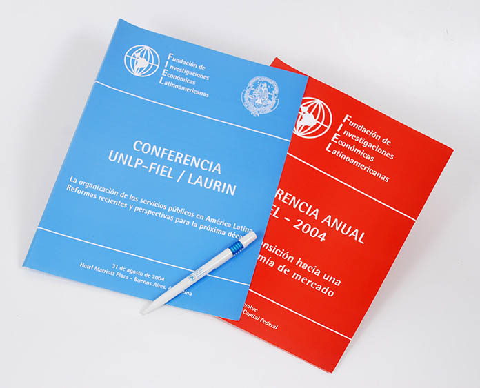 FIEL: diseño y confección de carpetas de cartulina y bolígrafos para evento.